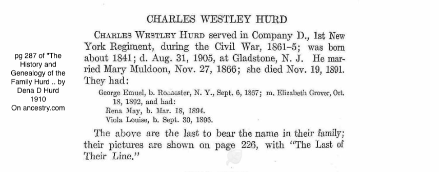 Chas W Hurd Age: 34 Residence Date: 1 Jun 1875 Residence Place: Rochester Ward 09, Monroe, New York, USA Election District: Ward 09, E.D. 01 Chas W Hurd 34 Mary A Hurd 30 Geo E Hurd 7 Anna Dobson 19