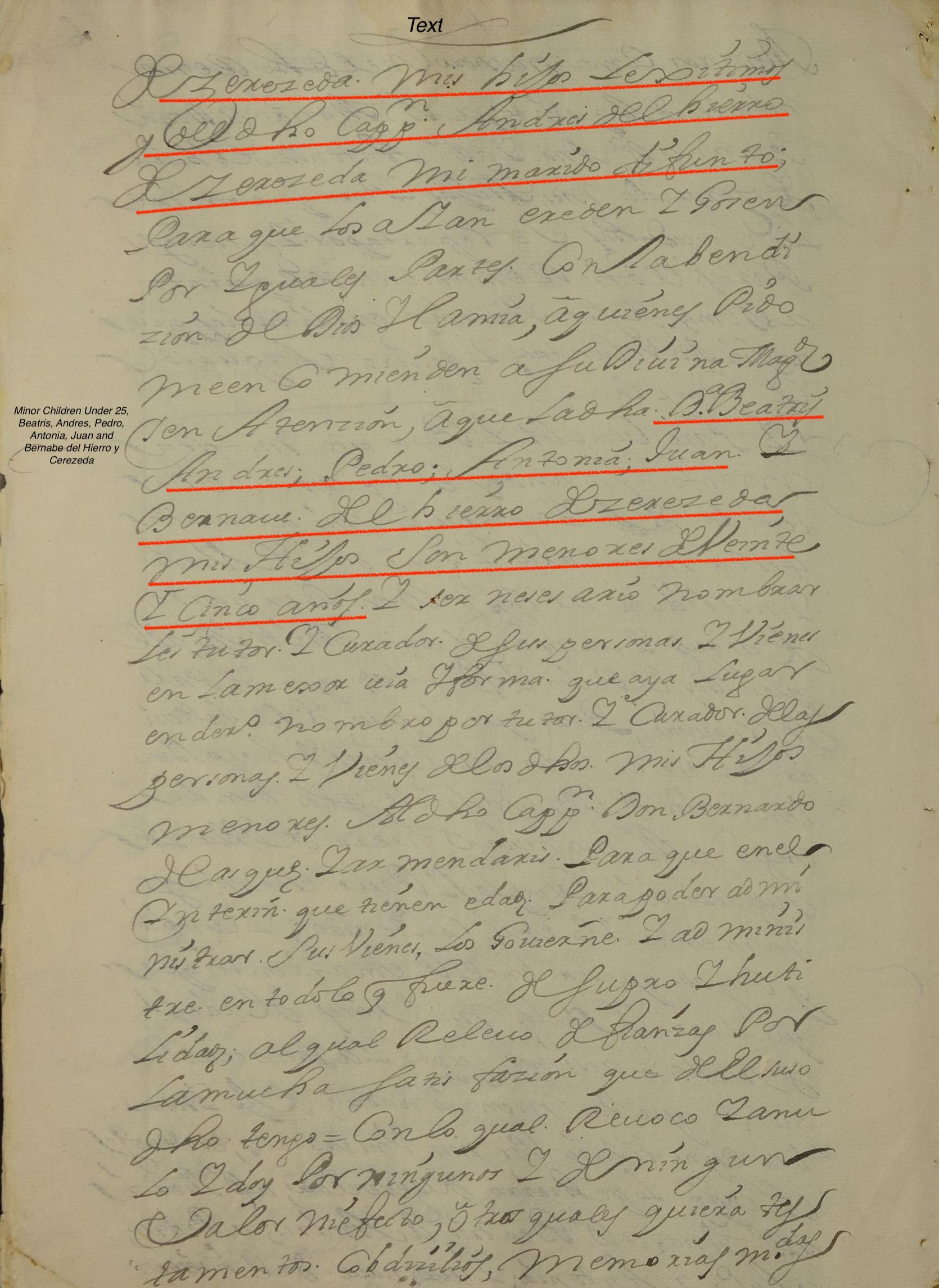 Antonia del Hierro Zereceda Gonzales baptised July 2, 1673 Parral-Chihuahua. Parents Andres del Hierro/Regina de Vera Bernabe Domingo Hierro Bera baptised June 16, 1675 Valle de Allende-Chihuahua. Parents Andres del Hierro/Regina de Vera Bartolome del Hierro Zereceda February 16, 1684 Parral-Chihuahua Will establishes his death, notes wife Antonia Gonzales de Vera, his father Lope Hierro de Sereceda, mother Beatris Grados, his brothers, nephew, niece, son in law, daughters.