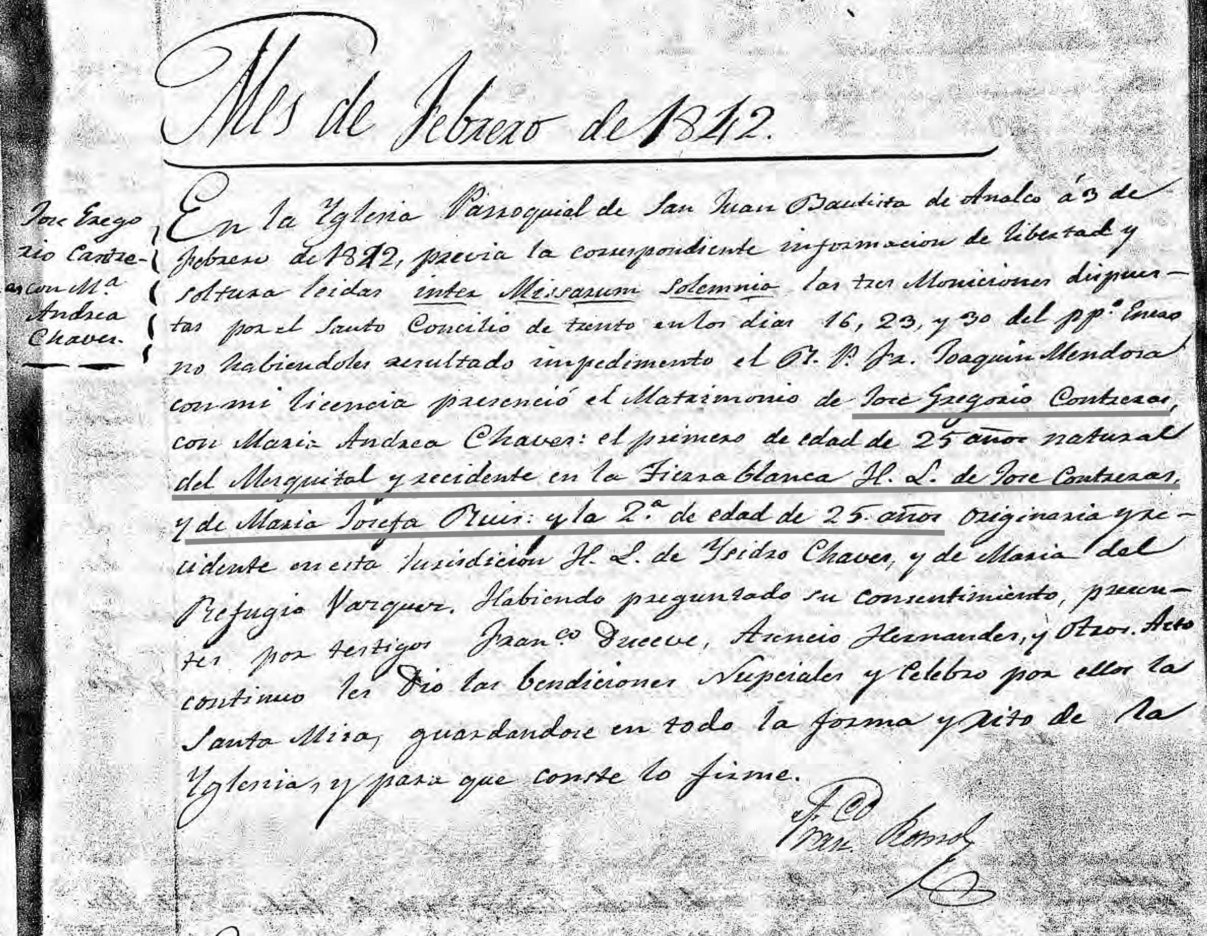 Compromiso of Gregorio Contreras in 1842 for Marriage to Andrea Chaves