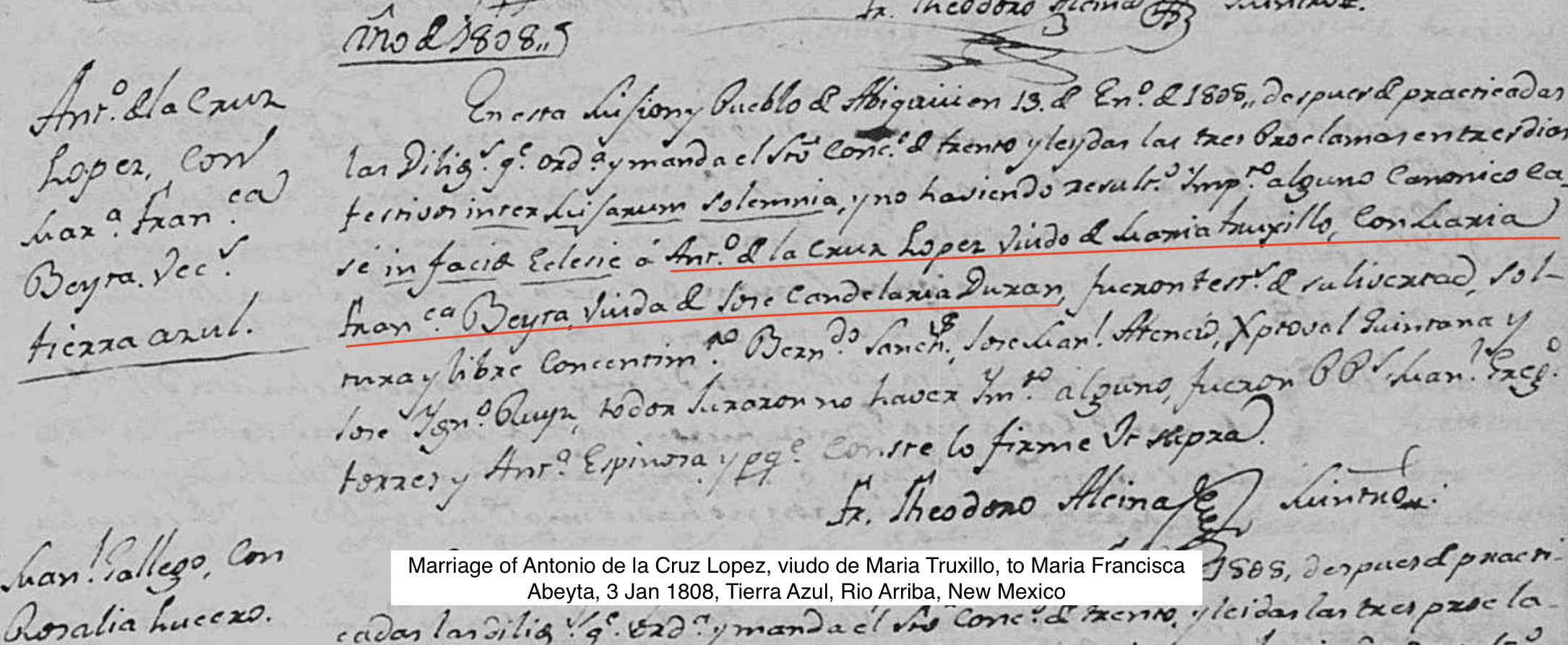 Second Marriage of Antonio Lopez, 1808, Tierra Azul, Rio Arriba, NM