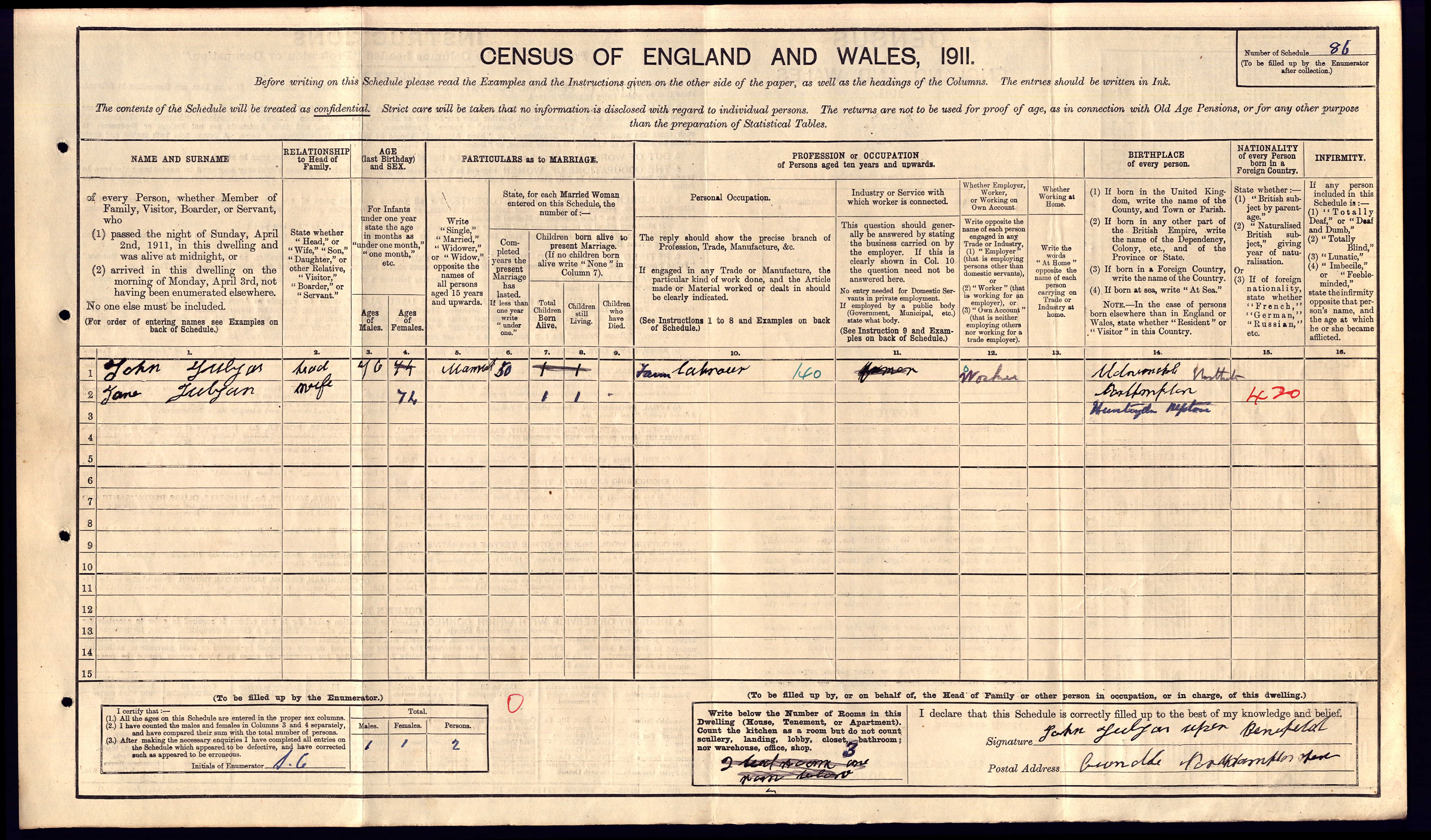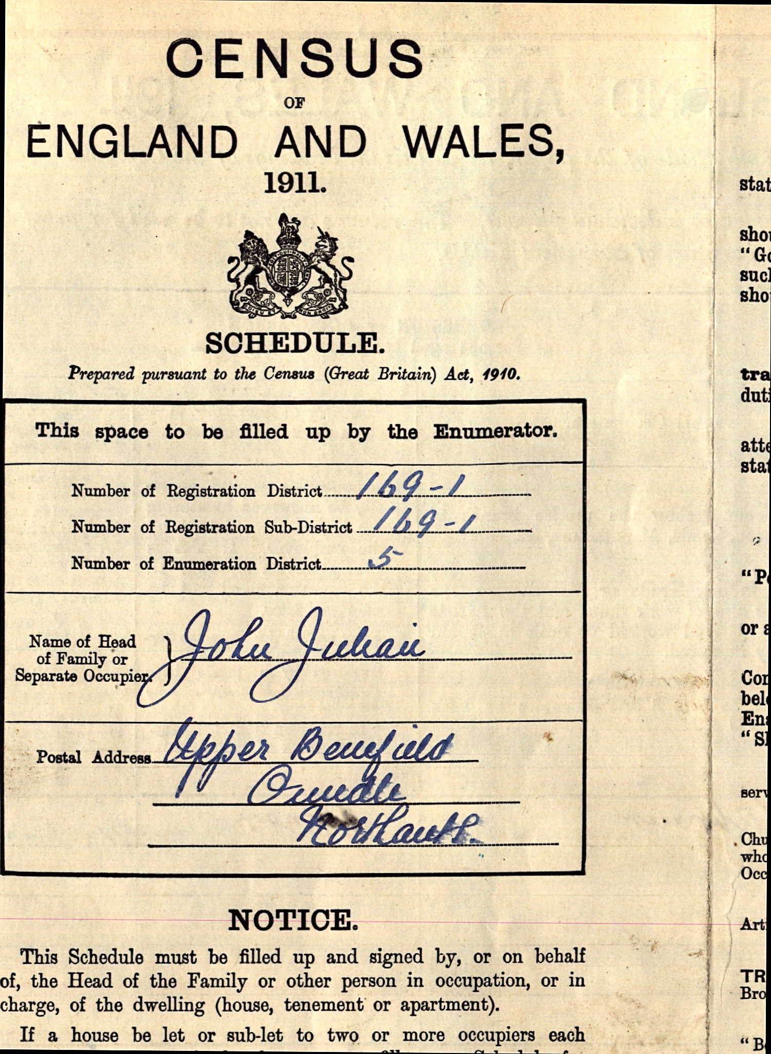 Family Entry in 1911 Census