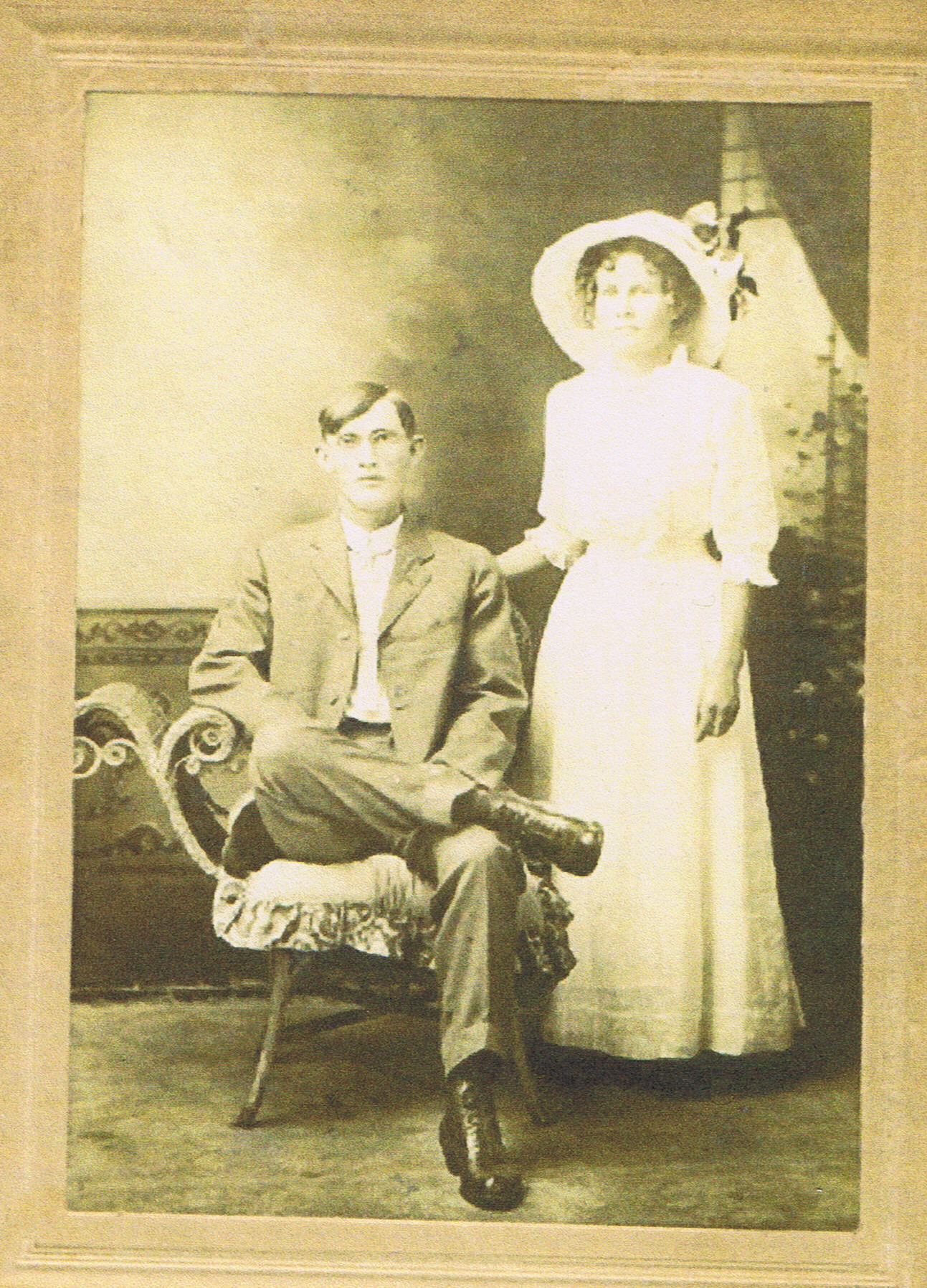 Here is Carrie Magee and Harry Hayman's wedding photo. It was taken in Texas. Children: Gladys, Paul, George, Dale, Edith, Mary, Louise, Joann (unsure how to spell Joanne) Lois. Notice that they also had 3 boys and 6 girls. I am Mary's daughter. All of the females are still living, as is George.