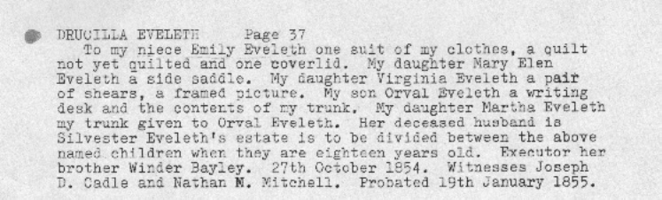 Death of a father | Sylvester EVELETH 1855 (Age 10 years) Note: Drucilla BAYLEY Eveleth, in her will probated in 1855, stated her husband Sylvester was deceased.