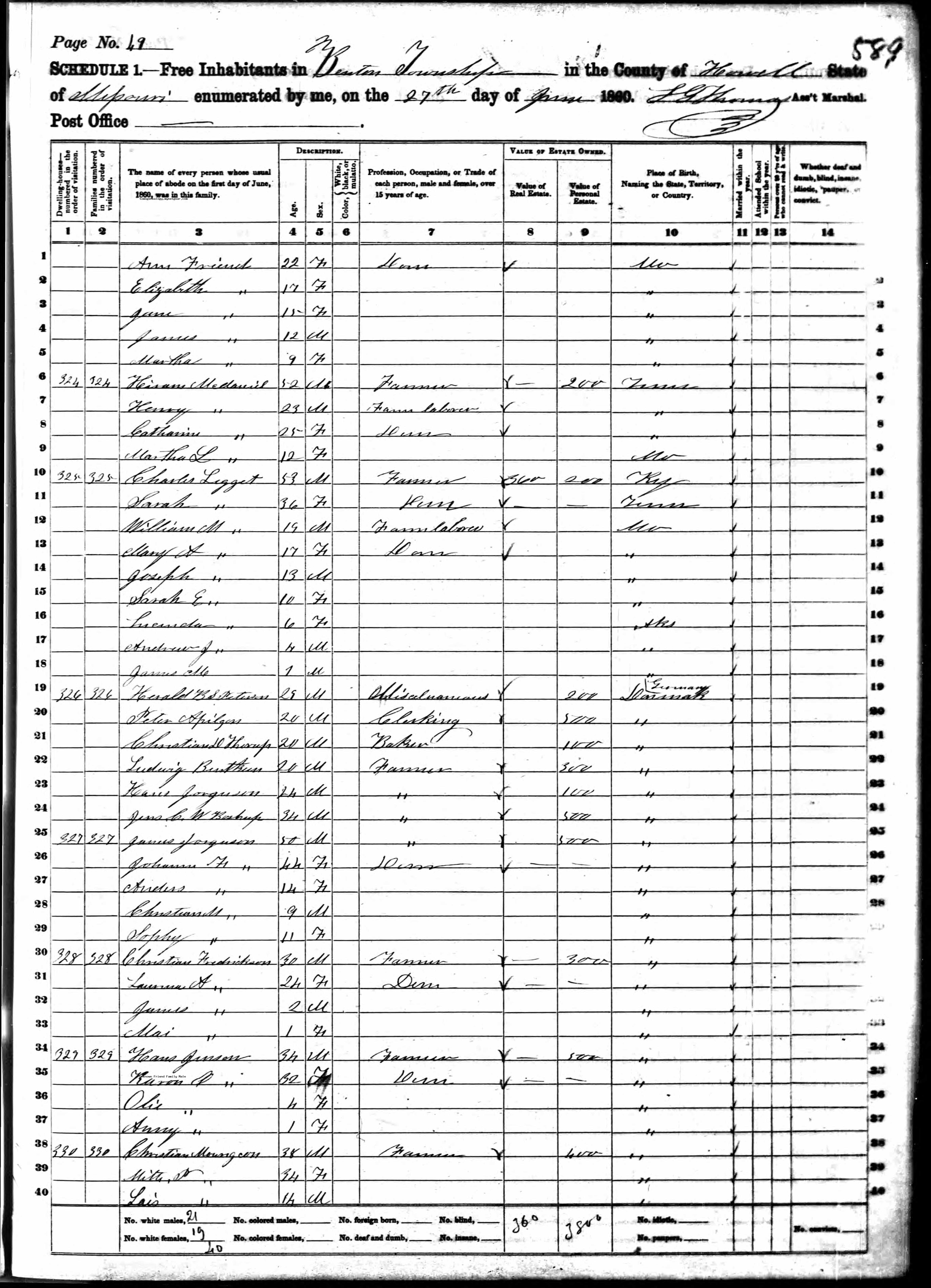 Census | Alexander FRIEND — View this family 1860 (Age 46 years) Note: Alexander and Eleanor living in Howell Co, MO. It is probably their son Elijah J who is living close… |