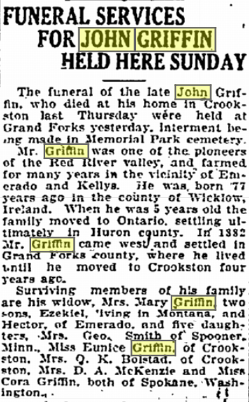 Death of a brother | Hector Alexander GRIFFIN 1960 (Age 82 years) Shared note: Burial Place: Gilby, Grand Forks County, North Dakota, USA