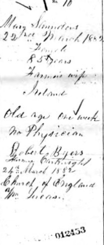 Death of a mother | Mary … March 22, 1882 (Age 47 years) |