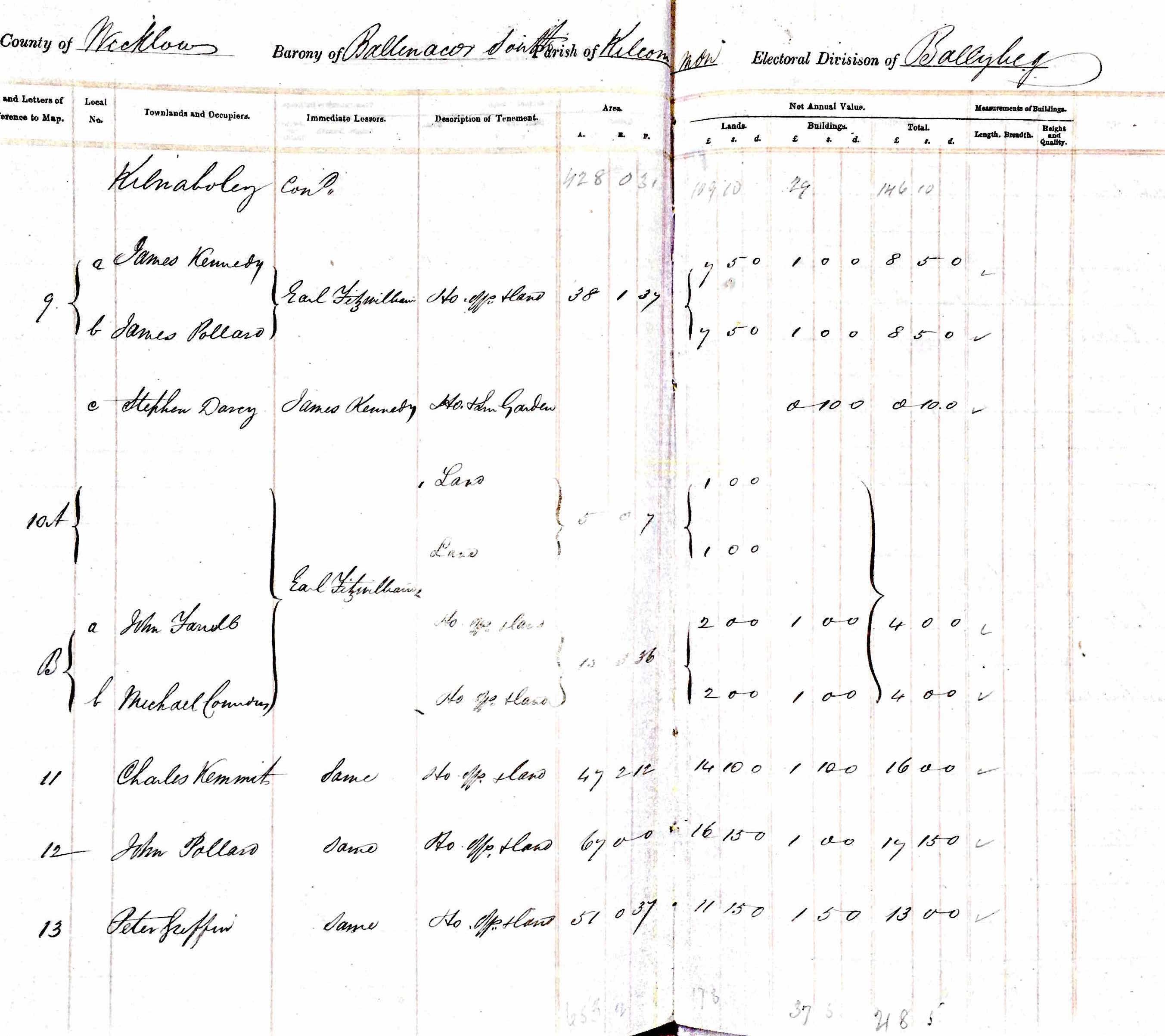 Property | Lot 13 of Ireland Valuation List for Knocknaboley 1860 (Age 47 years) |