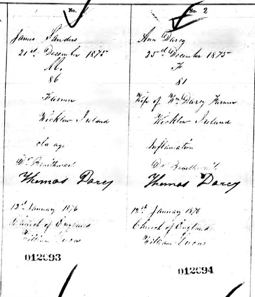 Birth: June 8, 1824 33 27 — Co Wicklow, Ireland Death: October 26, 1918 — Durham Co, Ontario |