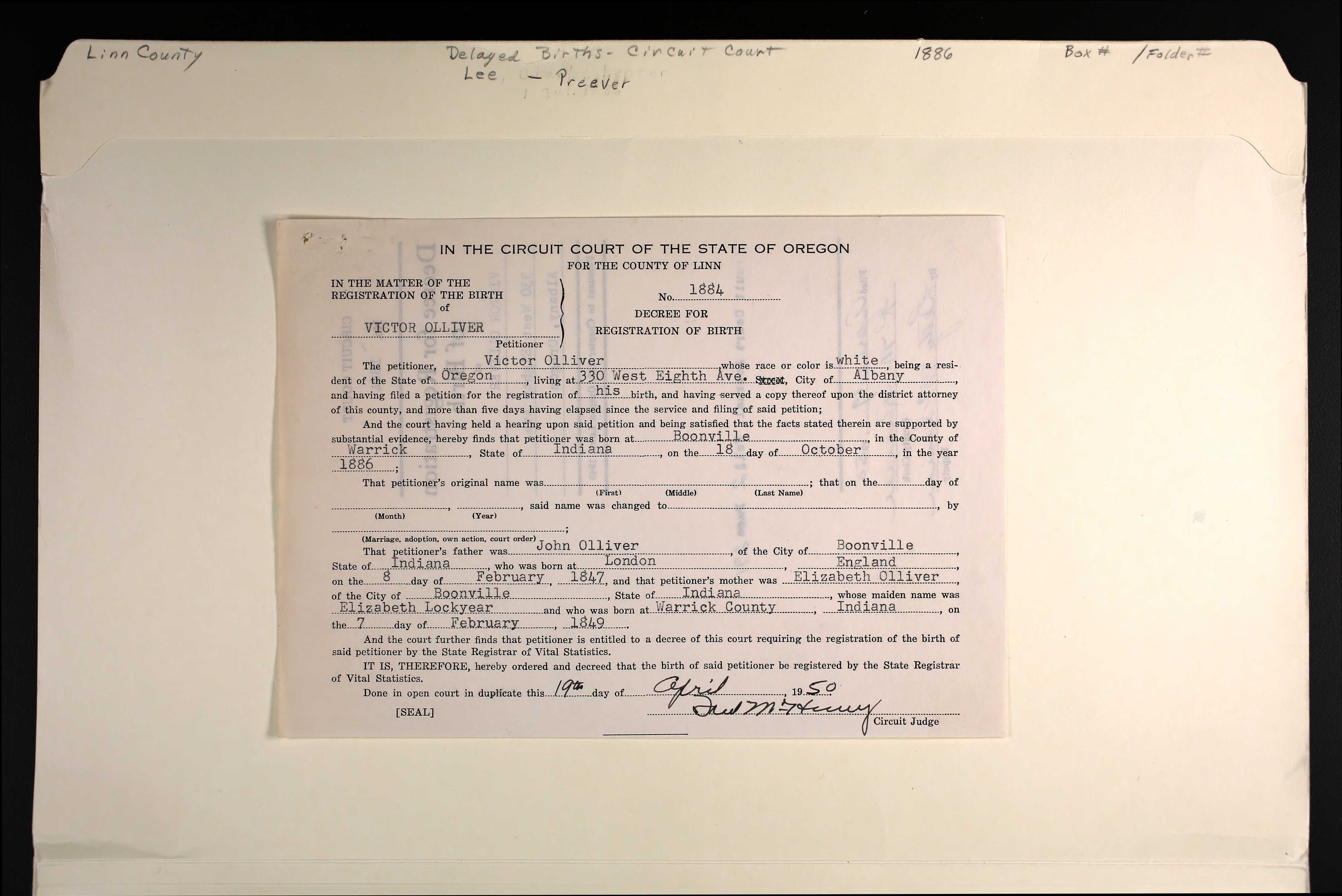 Birth: October 18, 1886 39 37 — Boonville, IN Death: June 5, 1986 — Albany, Linn County, Oregon, United States of America |