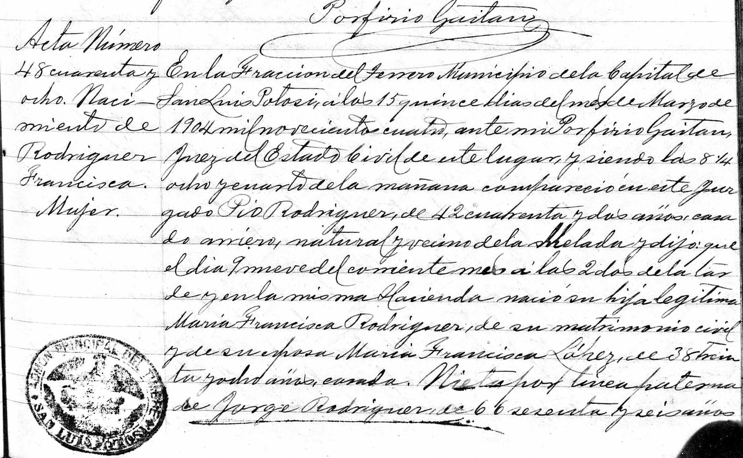 Pioquinto RODRÍGUEZ Birth: July 14, 1861 — Bocas, Bocas, San Luis Potosí, México Death: after 1930 |