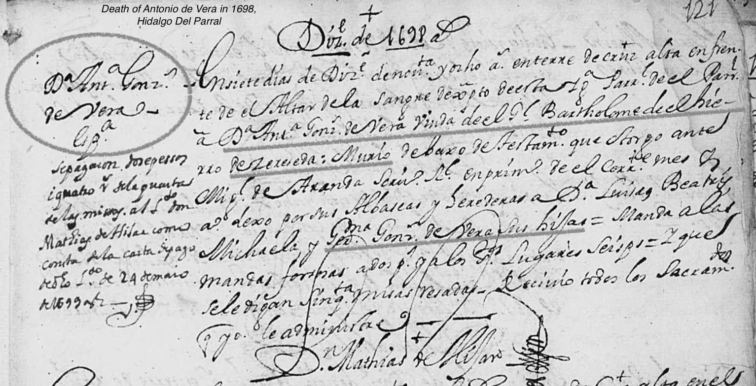 Regina de VERA Birth: 1620 60 — Cuencame, Durango, Mexico Death: June 2, 1673 — Parral, Chihuahua, Mexico |
