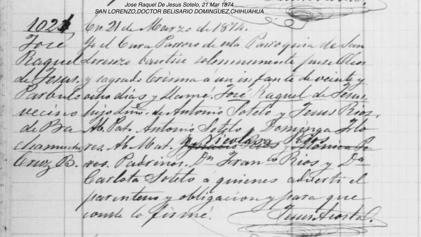 Baptism of a son | Jose Raquel de Jesus SOTELO March 21, 1874 (Age 21 years) |