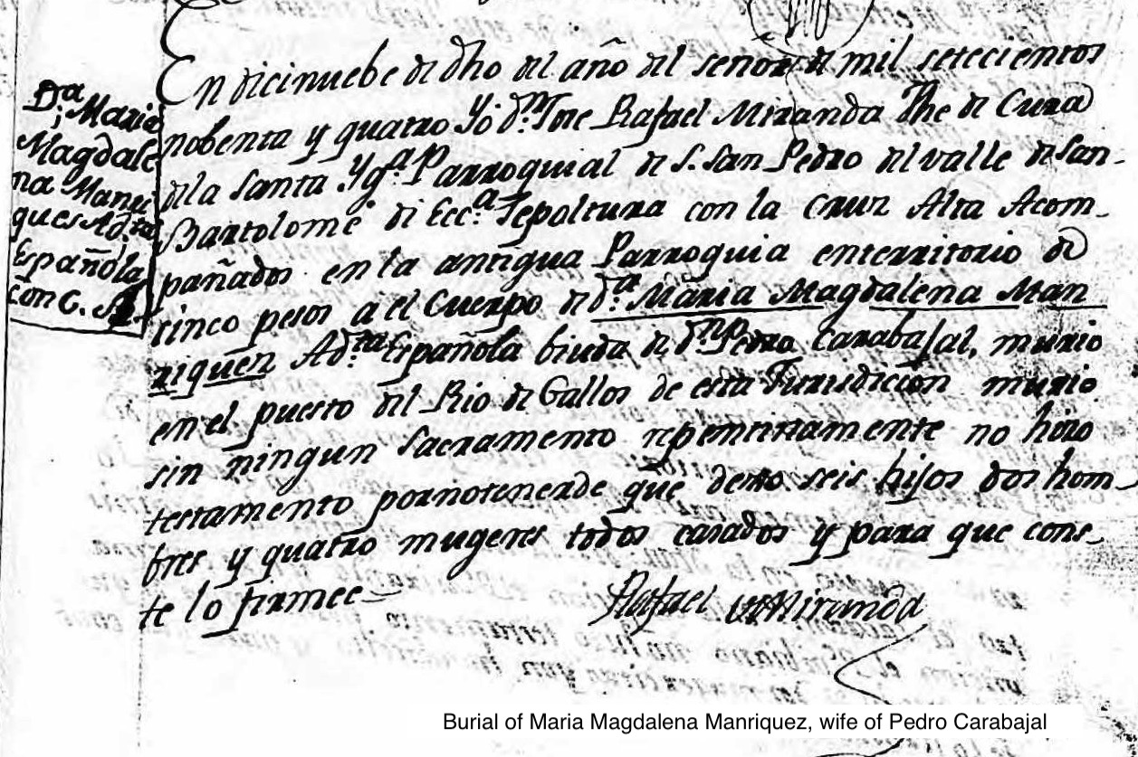 Burial of a mother | Magdalena ENRRIQUES 1794 |