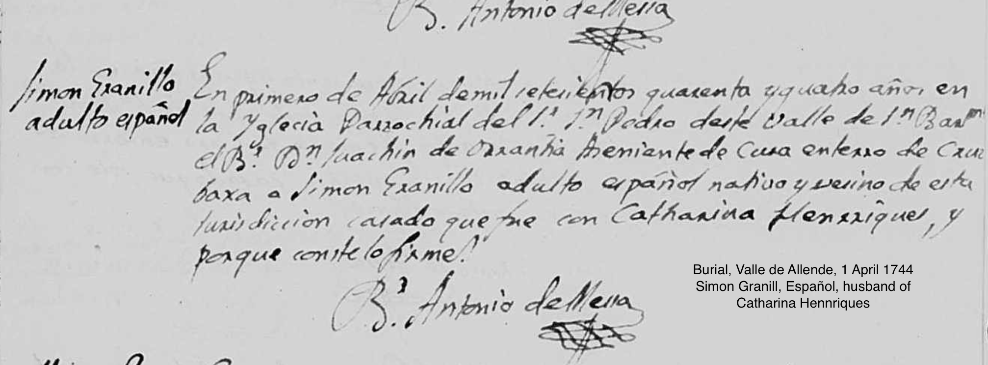 Burial of a maternal grandfather | Simon PEREZ GRANILLO II April 1, 1744 (Age 6 months) |