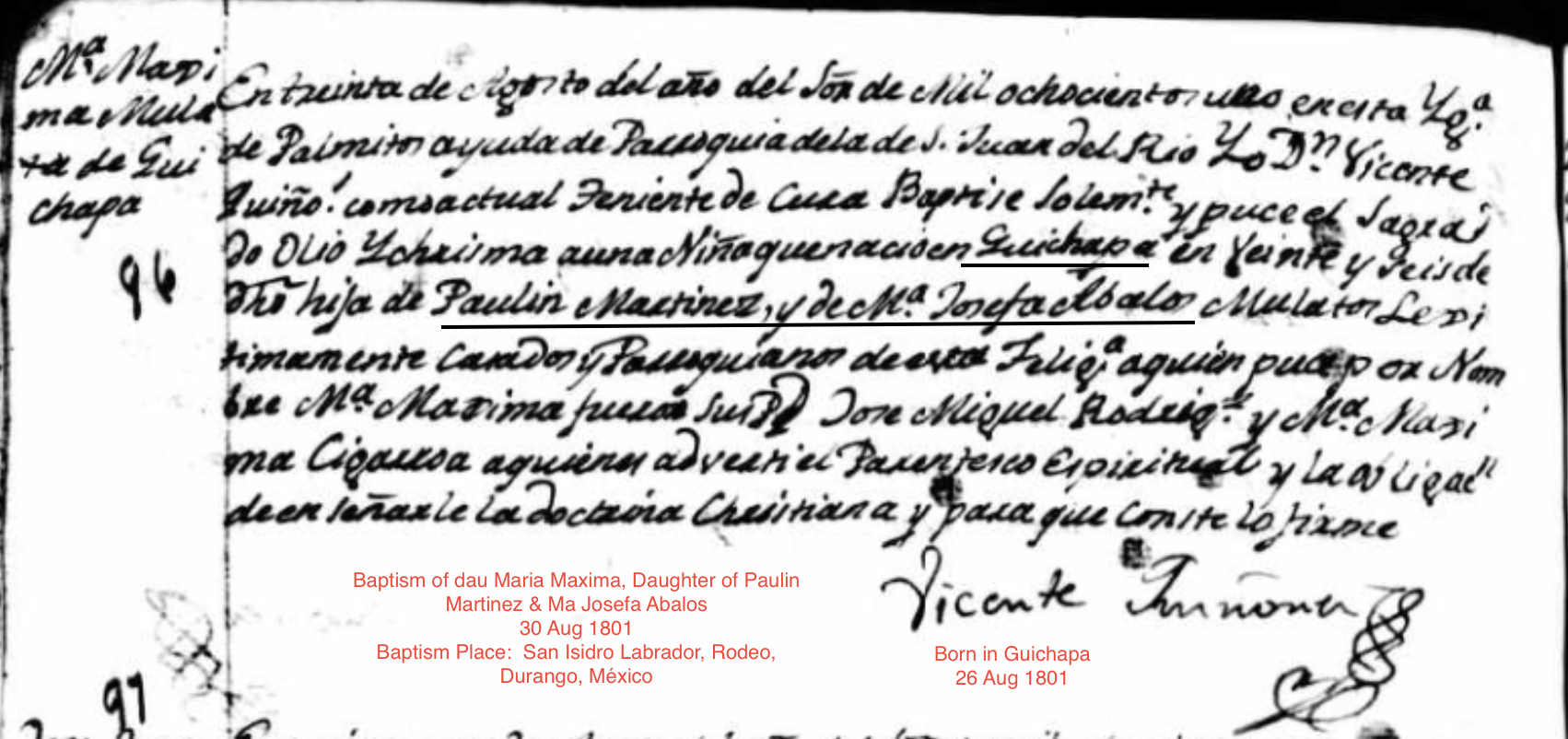 Maria Maxima MARTINEZ Birth: August 26, 1801 — Guichapa, Rodeo, Durango, Mexico |