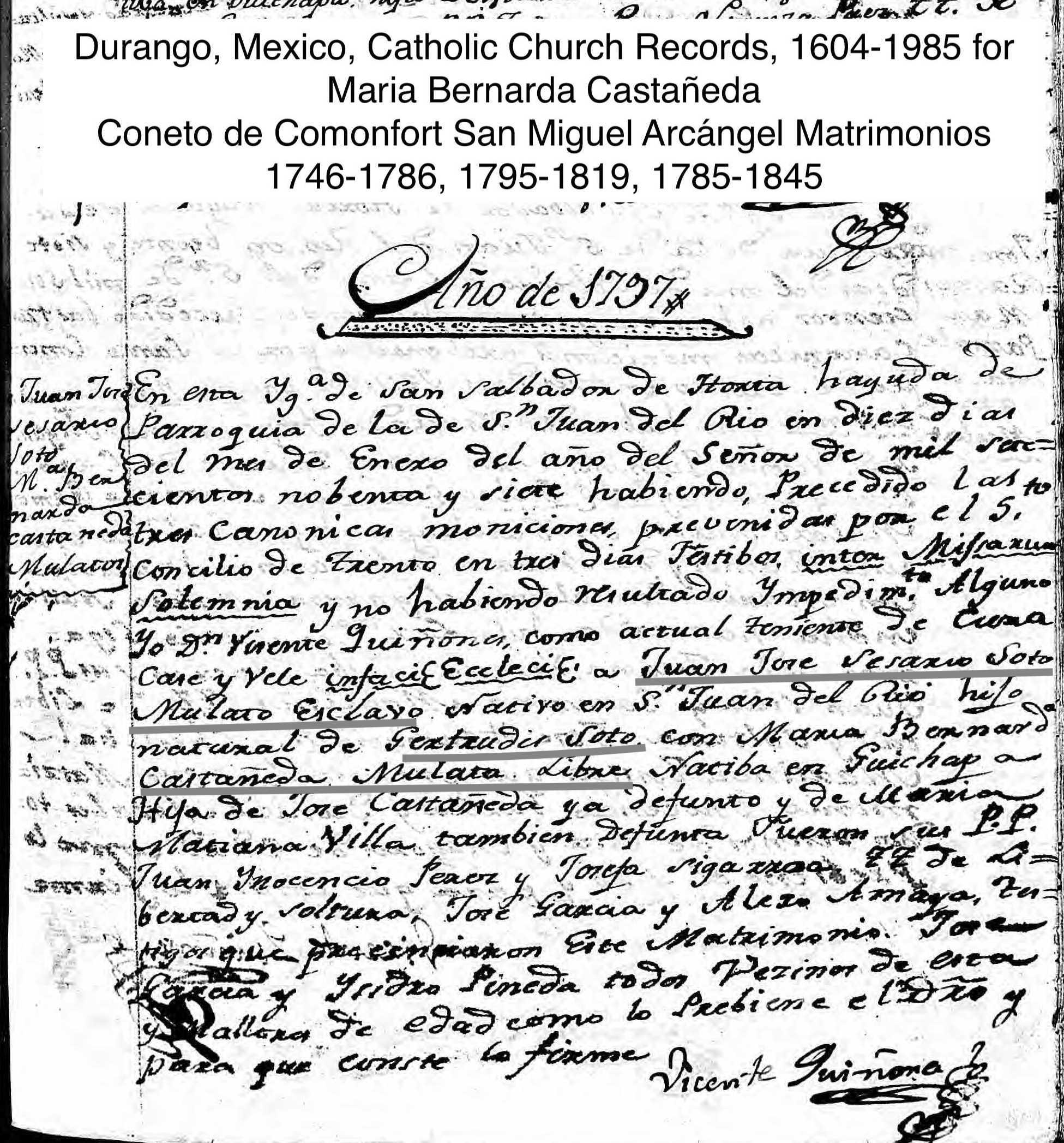 Marriage: January 10, 1797 — San Miguel Arcángel, Coneto de Comonfort, Durango, Mexico |