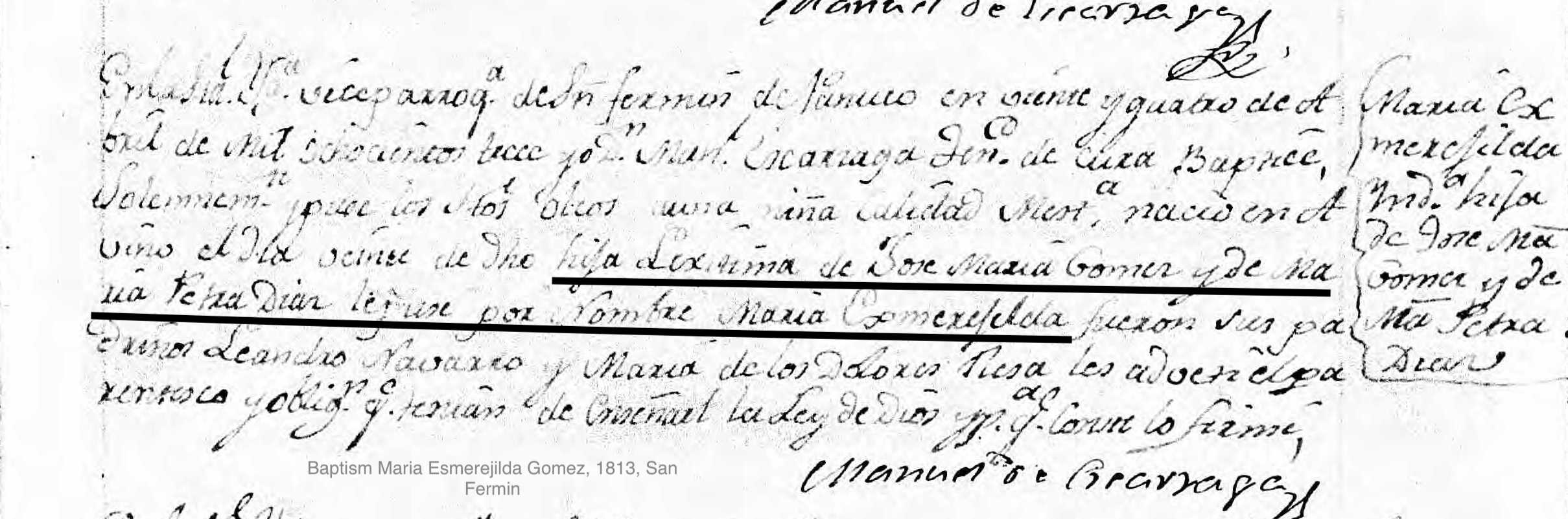 Baptism of a daughter | Maria Esmeregilda GÓMEZ DIAZ April 24, 1813 (Age 23 years) |