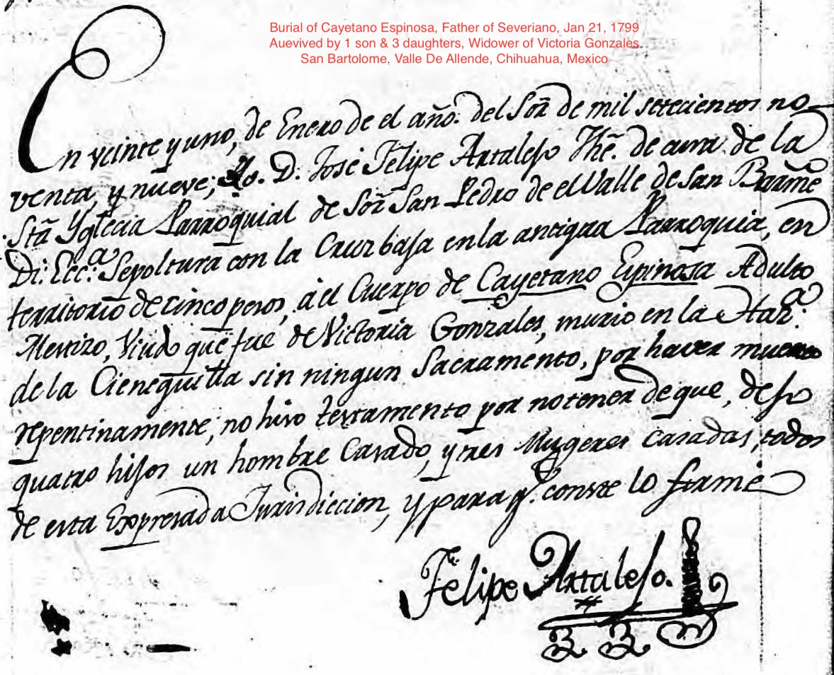 Burial of a paternal grandfather | Calletano ESPINOSA January 21, 1799 (Age 14 years) |