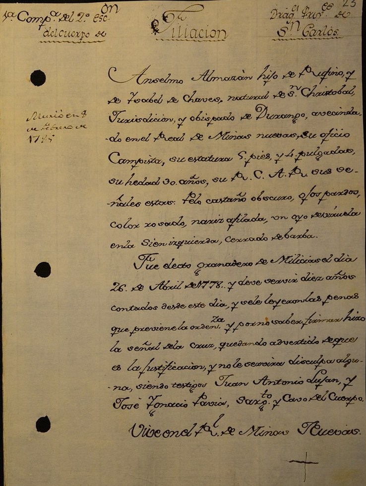 Joseph Antonio Anselmo de ALMASAN Baptism: May 12, 1748 — San Jose, Hidalgo del Parral, Chihuahua, Mexico Death: February 8, 1785 — Chihuahua, Mexico |