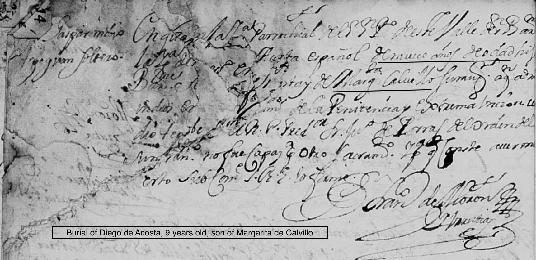 Diego ACOSTA CALVILLO Baptism: June 11, 1684 — San Bartolome, Valle De Allende, Chihuahua, Mexico Burial: December 1692 — San Bartolome, Valle De Allende, Chihuahua, Mexico |