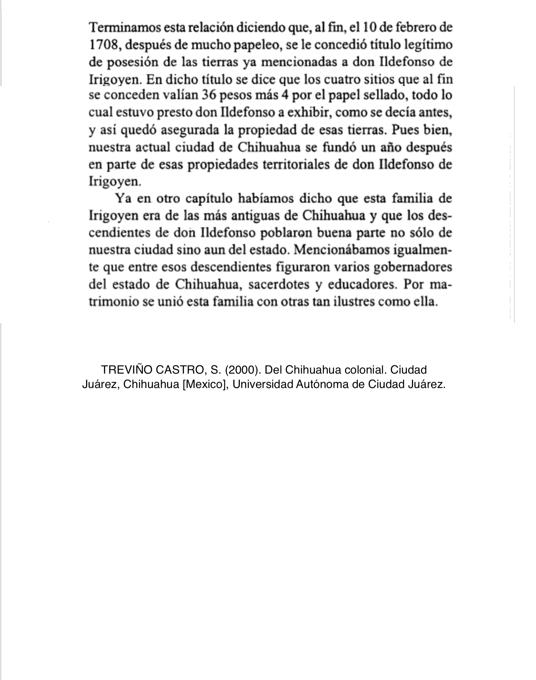 | Marriage | Treviño Castro, Salvador. Del Chihuahua colonial. Mexico: Universidad Autónoma de Ciudad Juárez, 2000. |