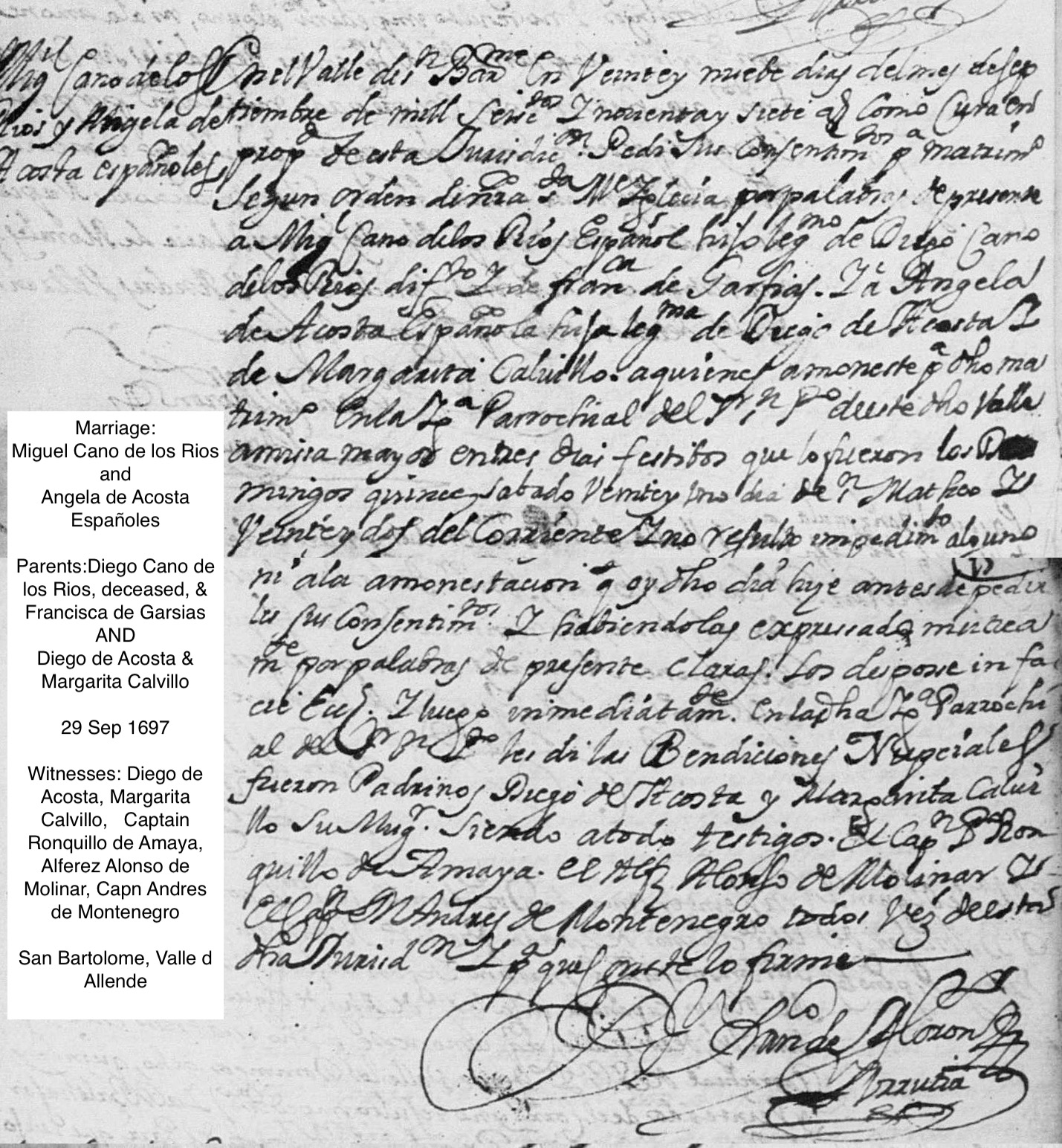 Miguel CANO de los RIOS Baptism: October 30, 1672 44 35 — San Bartolome, Valle De Allende, Chihuahua, Mexico Burial: December 29, 1743 — Valle de San Bartolome, Chihuahua, Nueva Vizcaya |