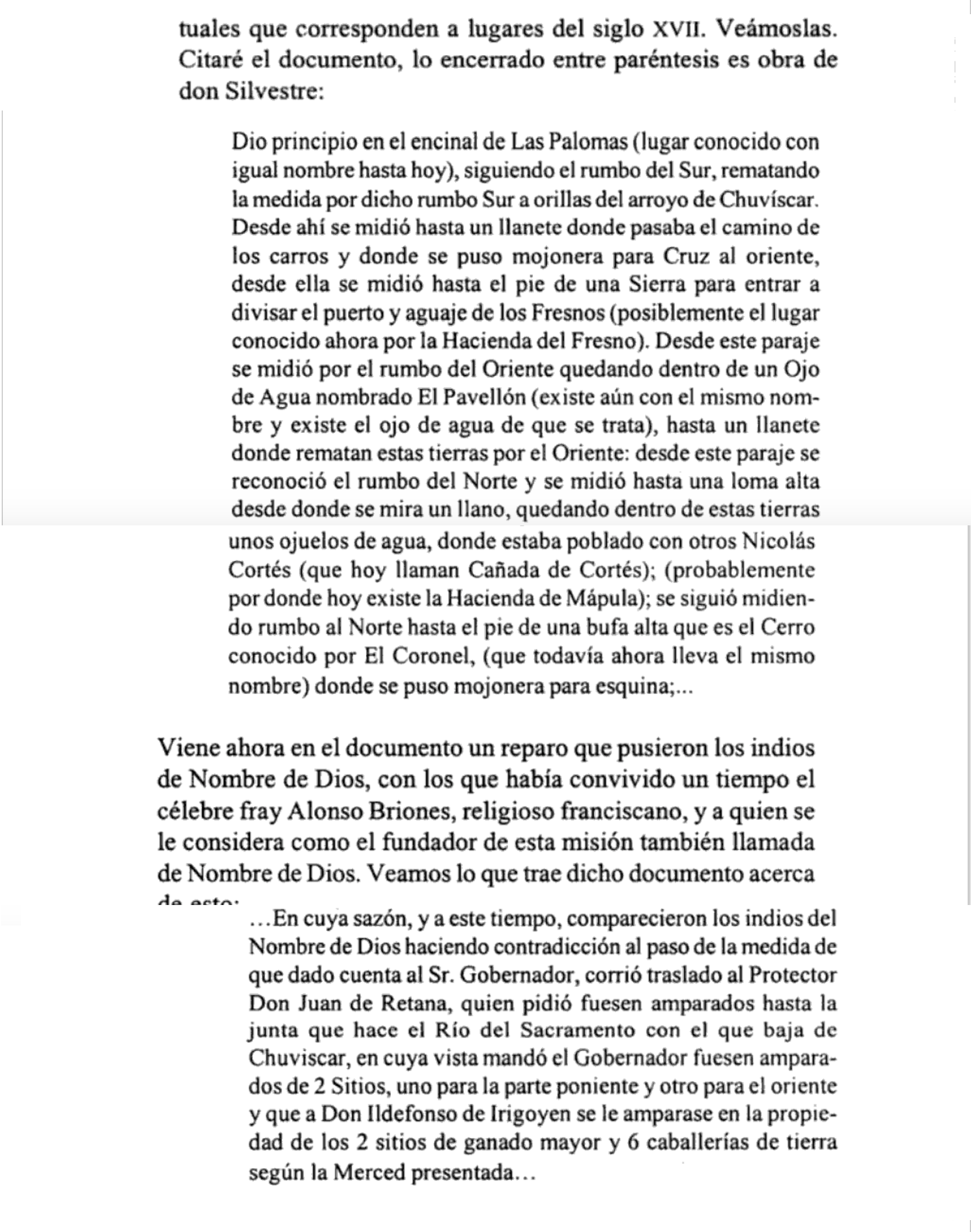 | Property | Miguel Cano de los Rios was mentioned in this document from 1723. Miguel was executor of part of the estate of his brother Blas; in 1723 Blas Cano's children demanded that Miguel release the Hacienda's owned by Blas to themselves. From the book DEL CHIHUAHUA COLONIAL. LA PROPIEDAD DE LA TIERRA, pg 163 Gracias a un litigio y a una venta de tierras nos enteramos ahora de que la Hacienda de San José del Sacramento, en cuyas demasías fue fundada nuestra ciudad actual, perteneció a la familia Cano de los Ríos. Esta escritura data de noviembre de 1723 y pasa ante el mismo escribano. Comparece don Antonio Cano de los Ríos, como hijo y unode los herederos del capitán Blas Cano y de Doña Ignacia Terrazas de Valenzuela. Dice que al morir su padre se inventariaron sus bienes y que éstos los recibió don Miguel Cano de los Ríos, su tío, como albacea y curador de los hijos menores del capitán Blas Cano. Se queja de que ya han pasado 13 años de la muerte de este capitán y los bienes mencionados no se han repartido entre los herederos, y por esto le tiene puesto pleito. Sigue la escritura y más delante dice el mencionado Antonio Cano de los Ríos que ahora ya se han puesto de acuerdo los herederos con su tío y que han decidido vender la hacienda. La van a vender a don Juan de Zubía Pacheco y la parte que le corresponde a don Antonio Cano de los Ríos se va a tratar en 1,032 pesos de oro. Otro dato de interés para la vida de nuestra ciudad es que esa Hacienda de San José del Sacramento se dice que lindaba con tierras de los indios de la Misión de Nombre de Dios y que contaba con tierras de labor, un molino y casas de habitación. (Translation) Thanks to litigation and a sale of land, we now learn that the Hacienda of San José del Sacramento, on which our current city was founded, belonged to the Cano de los Ríos family. This writing dates from November 1723 and passes before the same clerk. Don Antonio Cano de los Ríos appears as son and one of the heirs of Captain Blas Cano and Mrs. Ignacia Terrazas de Valenzuela. He says that when his father died his assets were inventoried and that they were received by Miguel Cano de los Ríos, his uncle, as executor and curator of the minor children of Captain Blas Cano. He complains that 13 years have passed since the death of this captain and the aforementioned assets have not been distributed among the heirs, and that is why he has a lawsuit. Further ahead the aforementioned Antonio Cano de los Ríos says that now the heirs have agreed with their uncle and that they have decided to sell the hacienda. They are going to sell it to Don Juan de Zubía Pacheco and the part that corresponds to Don Antonio Cano de los Ríos is going to be 1,032 pesos of gold. Another fact of interest for the life of our city is that the Treasury of San José del Sacramento is said to border the lands of the Indians of the Mission of Nombre de Dios and that it had farmland, a mill and houses. |