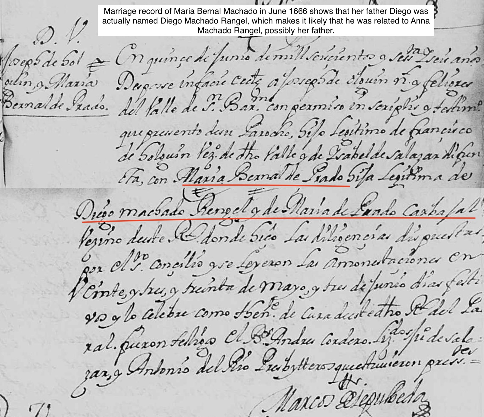 Diego MACHADO RANGEL Baptism: November 26, 1646 — San Jose, Hidalgo del Parral, Chihuahua, Mexico Death: 1692 — Nueva Vizcaya in Nueva España (Parral, Mexico) |