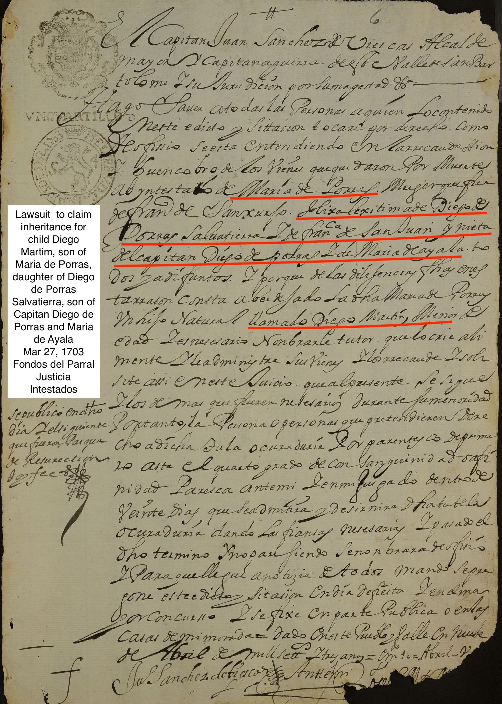 | Name | Named in 1676 document in Parral by his son Juan de Porras. |