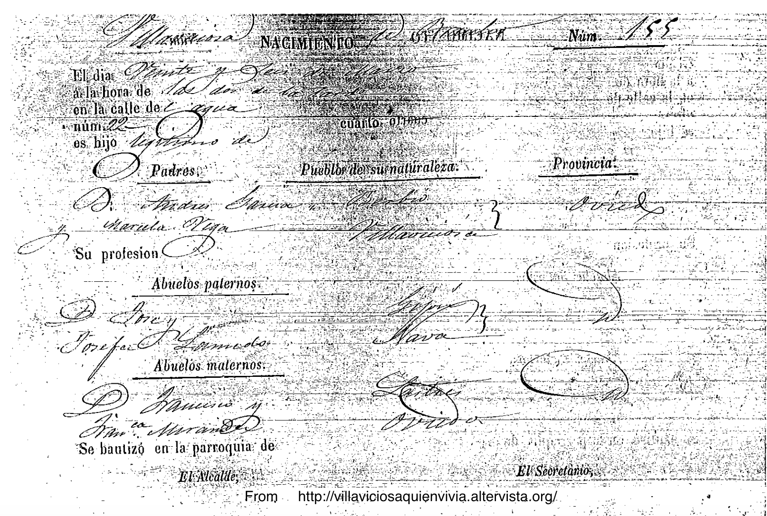 | Birth | "en la calle de Agua" http://villaviciosaquienvivia.altervista.org/ |