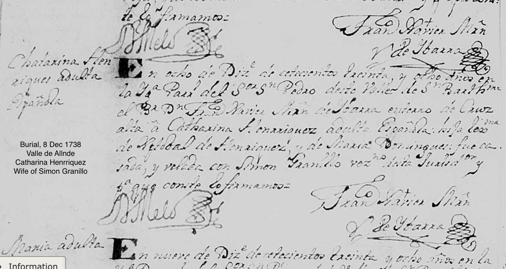 Burial of a maternal grandmother | Catharina ENRRIQUES December 8, 1738 (Age 43 days) |