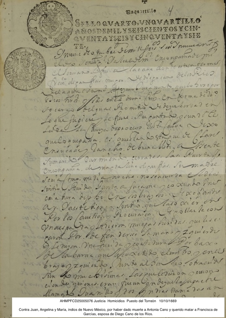Testimony | Inquest into Death of Antonia Cano de los Rios 1669 (Age 69 years)Francisca Testimony Note: Francisca testified that she was daughter of Magdalena de Garfias. Francisca was injured by Apache Indian servants at their ranch of Buena Vista in 1669.