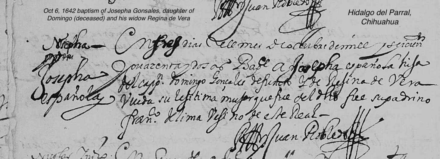 Josepha GONZALES Baptism: October 6, 1642 50 22 — San Jose, Hidalgo Del Parral, Chihuahua, Mexico |