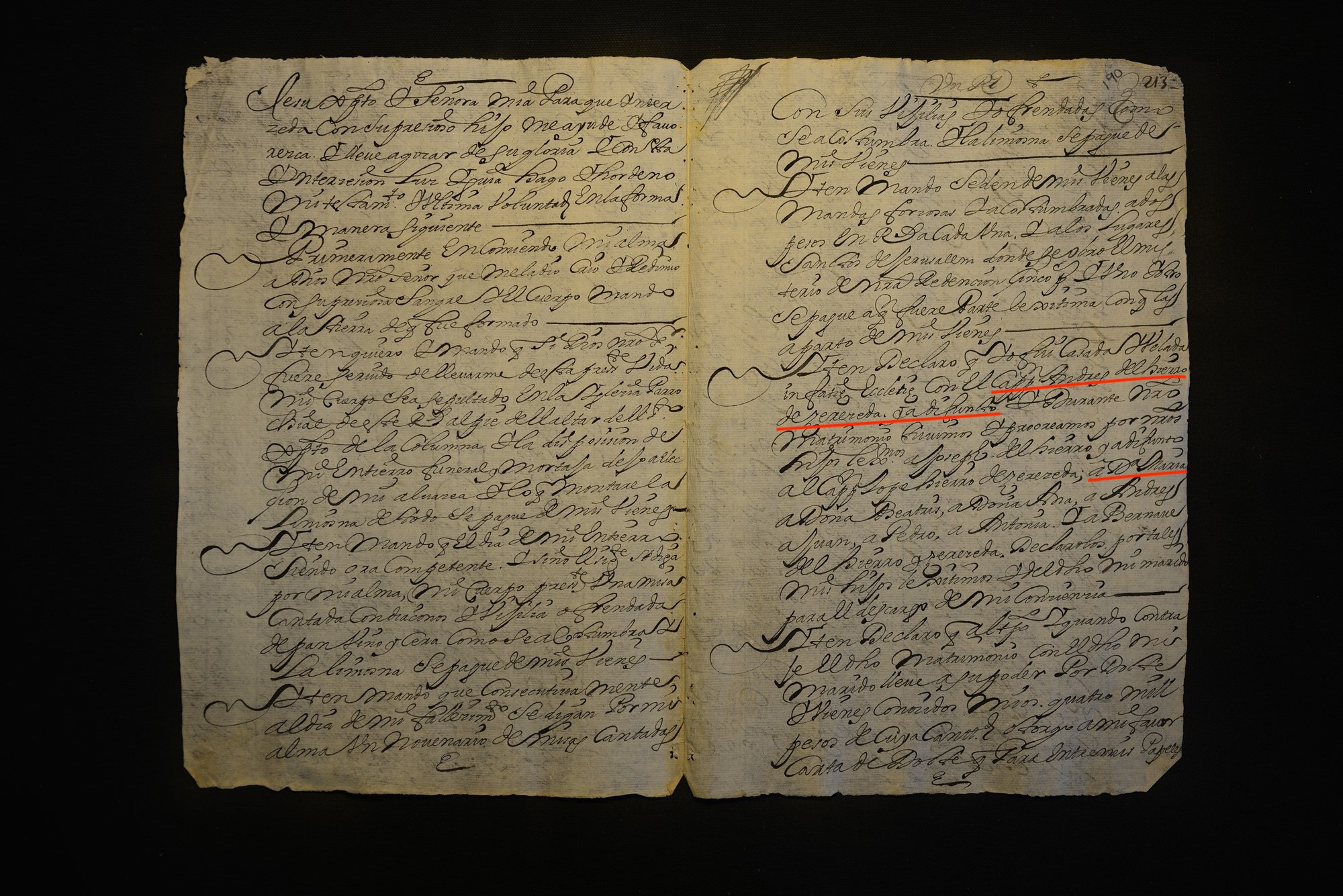 | Will | Excellent copy of Regina de Vera's will given to Escribano before her death. Gives the name of her parents and her husband. (Page 1) |