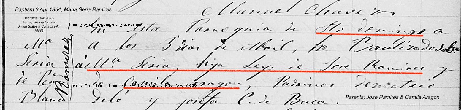 Maria Seria RAMIREZ Baptism: April 3, 1864 — Pena Blanca, Sandoval, New Mexico |
