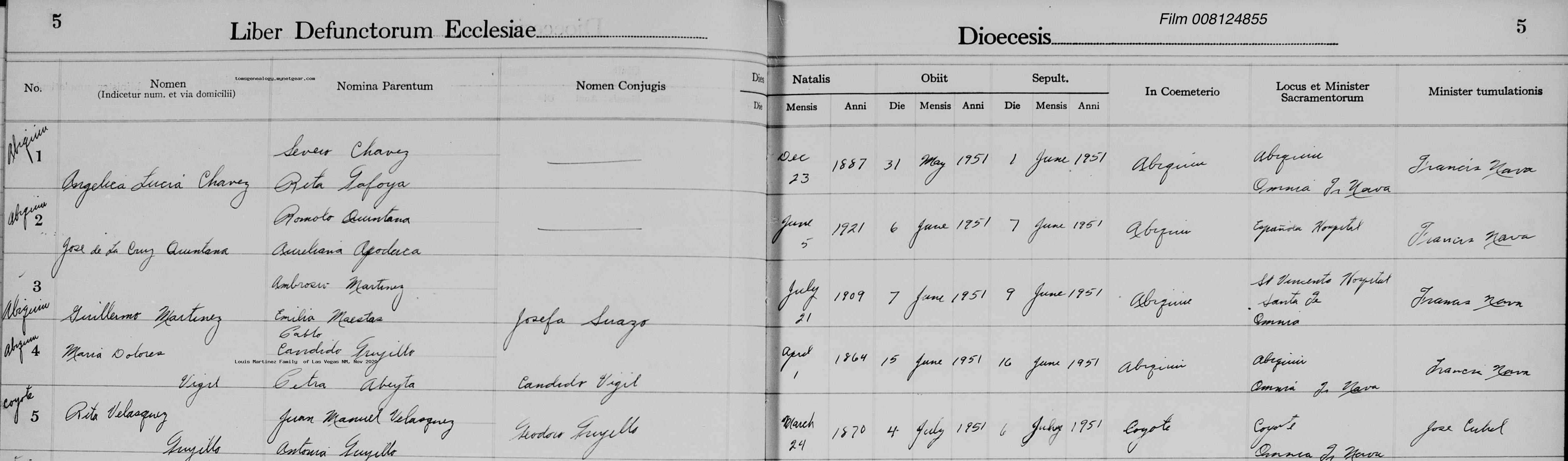 Burial | 1951 (Age 86 years) Address: Abiquiu, Rio Arriba County, New Mexico, USA Note: Death record gives the name of her mother - Petra Abeyta.