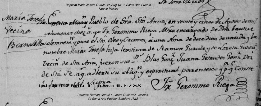 Maria Josefa GURULÉ Baptism: August 25, 1810 24 — Santa Ana Mission, Santa Ana, Sandoval, New Mexico |