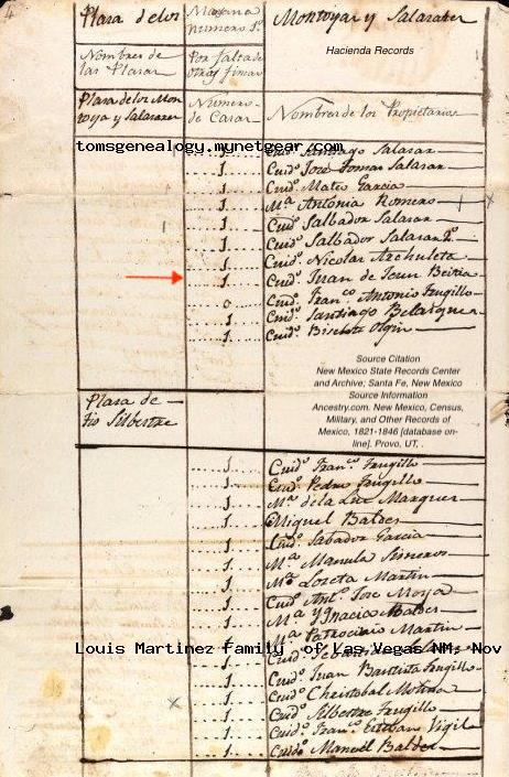 | Residence | New Mexico, Census, Military, and Other Records of Mexico, 1821-1846 on ancestry.com Hacienda Records Ciudadano: Juan de Jesus Beitia Residence Date: 1836 Residence Place: New Mexico, USA Page 110 of 467 |