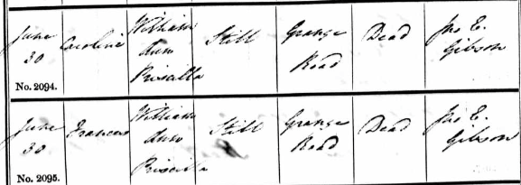 Birth of a daughter#7 | Caroline STILL 1850 (2 months after death) |