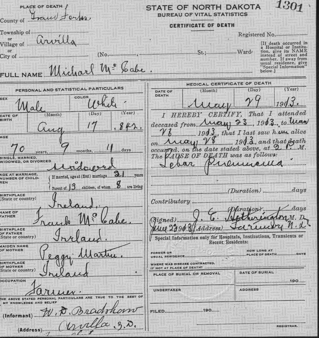 Death of a maternal grandfather | Michael McCABE May 29, 1913 |