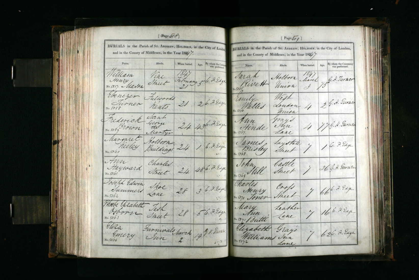 Death of a brother | James STILL December 15, 1822 (Age 6 years) Age: 6 Note: Burial record for James Still , age 6, of 7 Feathers Court, the address of the John Still family in other parish records of St Mary le Strand. The 15 Dec 1822 entry seems to clearly be Hill but another record found in the Westminster Archives shows the name is James Still with abode 7 Feathers Court. (Film Roll 20 of St Mary Le Strand Records, Westminster Archives,London.)