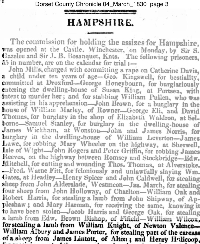 EventJames Porter Arrested for Stealing Sheep Carcas, 1830, Alton HampshireJames Porter Arrested for Stealing Sheep Carcas, 1830, Alton Hampshire