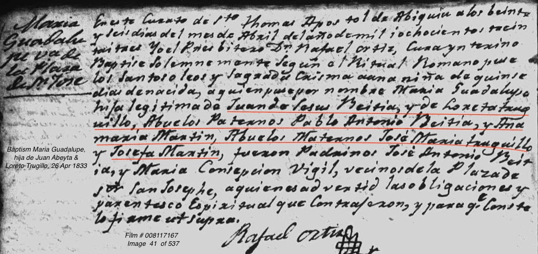 Maria Guadalupe ABEYTA Baptism: April 26, 1833 32 20 — Santo Tomás Apóstol, Abiquiu, Rio Arriba, New Mexico |