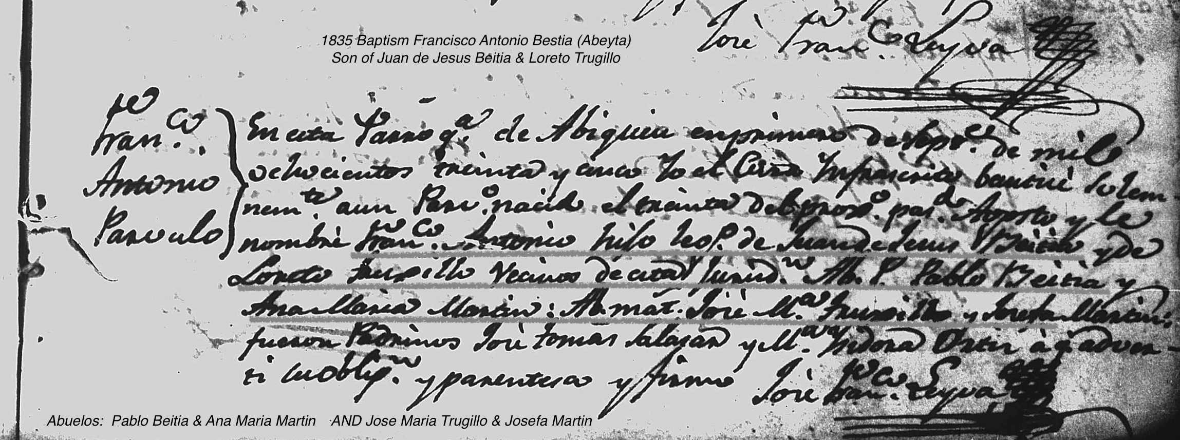 Francisco Antonio ABEYTA Baptism: August 1835 34 22 — Santo Tomás Apóstol, Abiquiu, Rio Arriba, New Mexico |