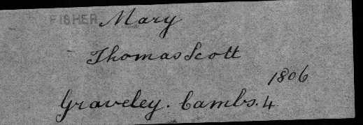 Census | Mary FISHER — View this family 1818 (Age 37 years) Note: From the Graveley Parish Register in the Society of Genealogist in London: In 1818 the parish priest… |