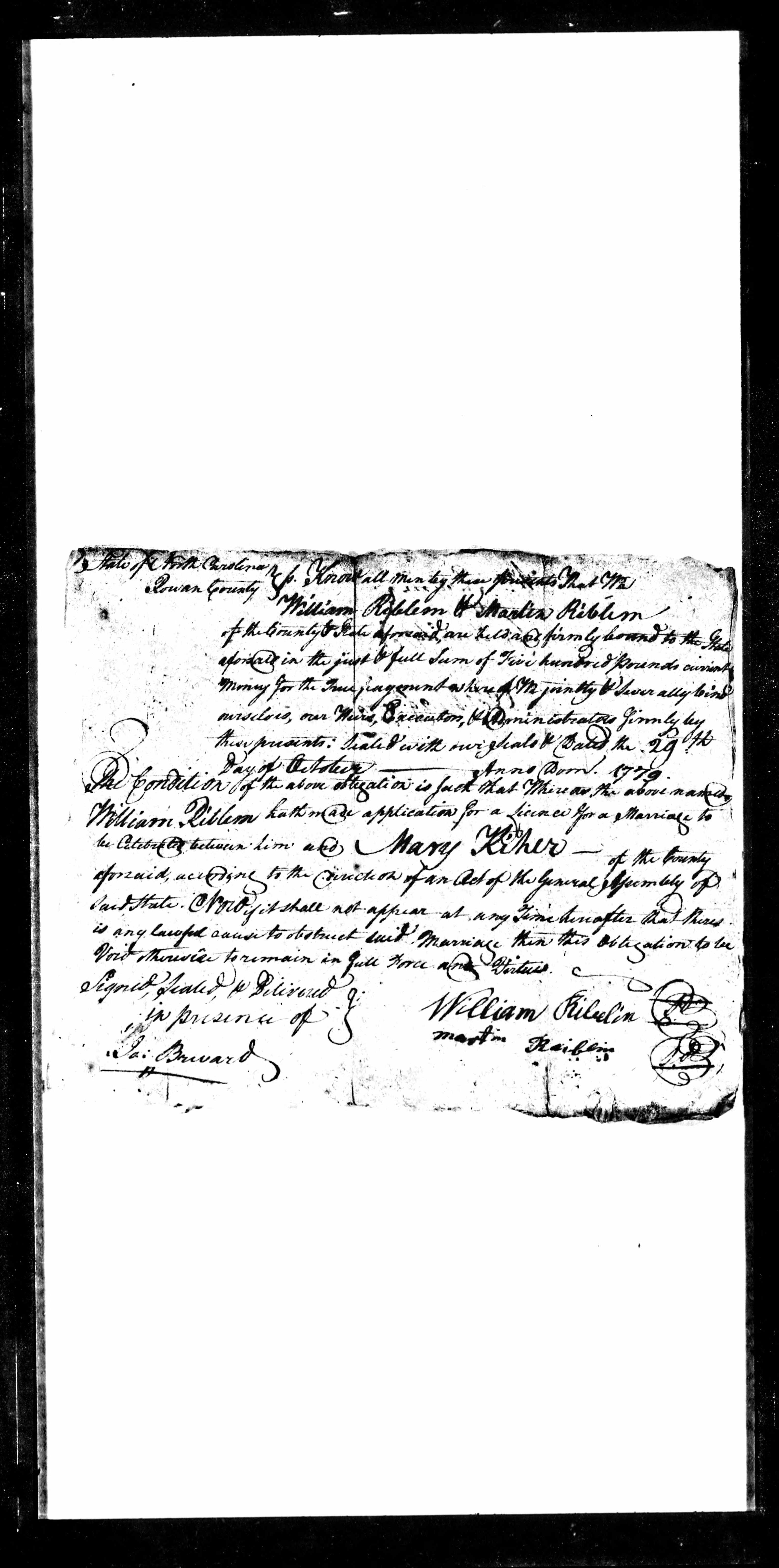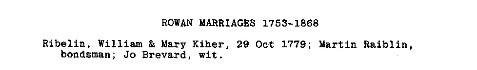 Marriage of a child | William RIBELIN — Mary Ann KIHER — View this family October 29, 1779 |