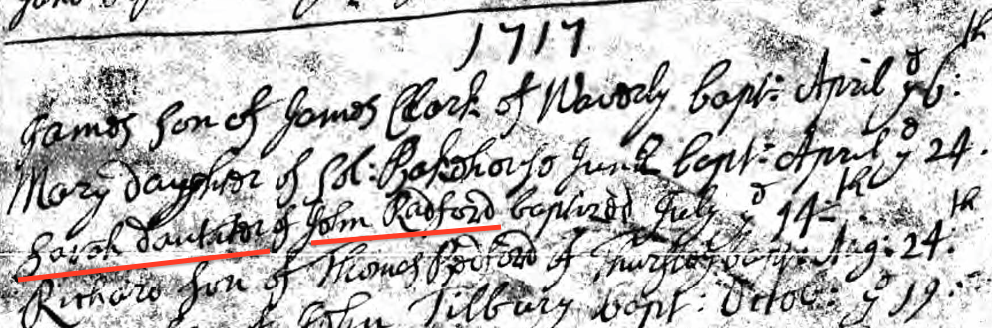 Birth of a sister | Sarah RADFORD July 14, 1717 (Age 13 years) |