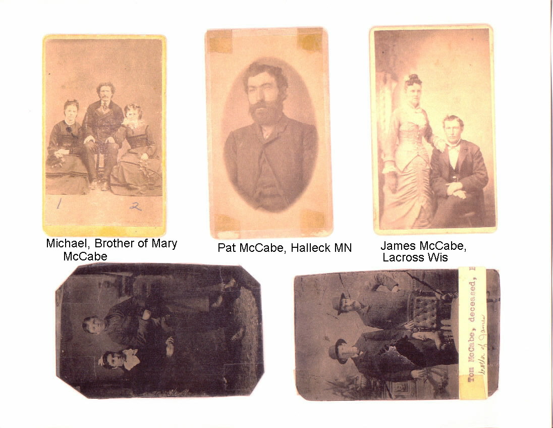 | Note | From "The Canadian Post", Lindsay, 16 Nov 1888 "Two prosperous farmers of Dakota in the person of Messrs. JAMES and MICHAEL McCABE arrived in Lindsay last week after an absence of 12 years on a visit for a couple of weeks to their father Mr. Michael McCabe of South Ops [Township]. Their reception at the homestead and from many oldtime friends may naturally be inferred to be a warm one." Note: Article may have been incorrect. Michael, the son, was held in the Queens Street asylum in Toronto at that time. The second visitor could have been Michael McCabe, son-in-law of old Michael, or it could have been one of James' other brothers in the Dakotas, Pat or Art. |