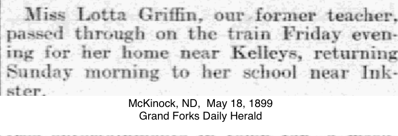 | Residence | Charlotte was a school teacher in the 1900 census of ND. |