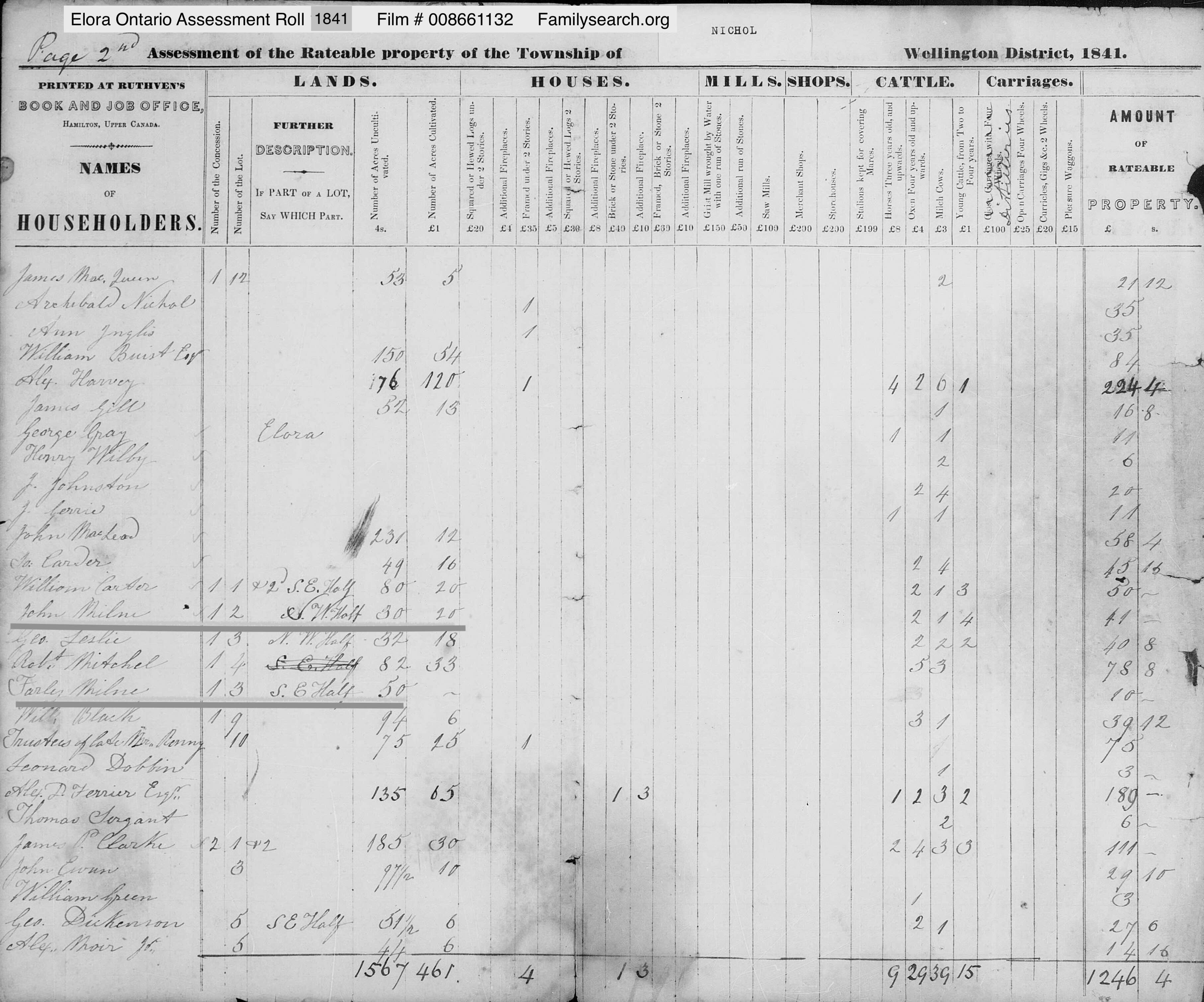 | Census | Ontario and Nova Scotia, Census, 1800-1842 For Fairly Milne Year: 1842 Province: Ontario Residence: Nichol Township |